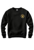 Schwarzer Pullover mit gesticktem FFWL-Circle-Patch auf Höhe der linken Brust und FFWL-Stickveredelung über dem linken Ärmelbund