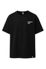 Schwarzes Oversized Heavy Unisex-T-Shirt mit weißem Frankfurter Schule-Schriftzug auf der linken Brust.